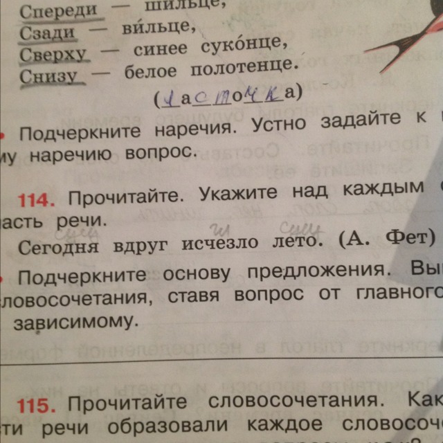 сегодня -наречие( или существ ) вдруг-наречие, исчезло глагол, лето -существительное.