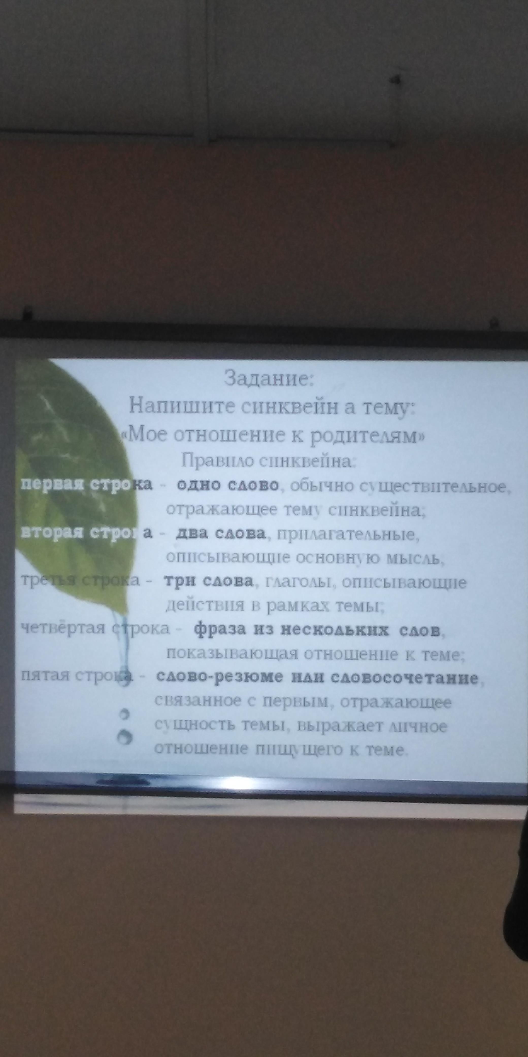 Пожалуйста, срочно) Помогите написать синквейн, на тему: "моё отношение к родителям".