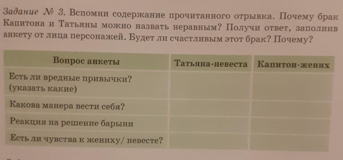 Какова манера вести себя: Татьяна: быть тихой, запуганной, Капитон: показывать все свои худшие качества