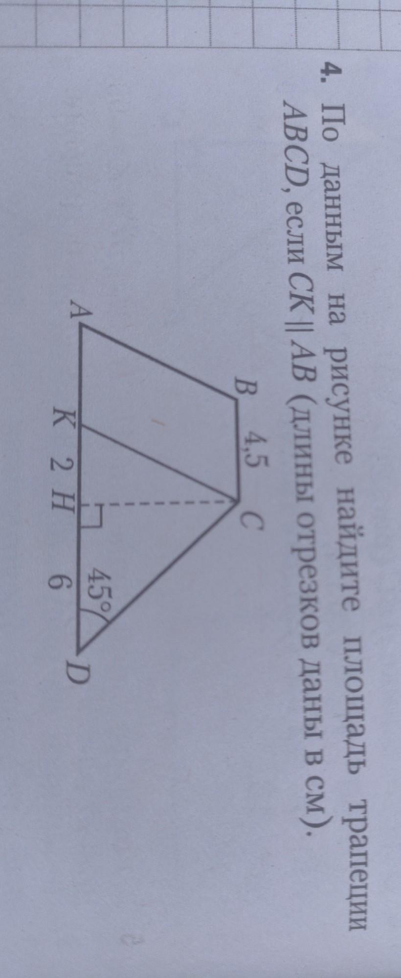 S = (BC+AD)/2*CH = (4,5 + 12,5)/2 * 6 =