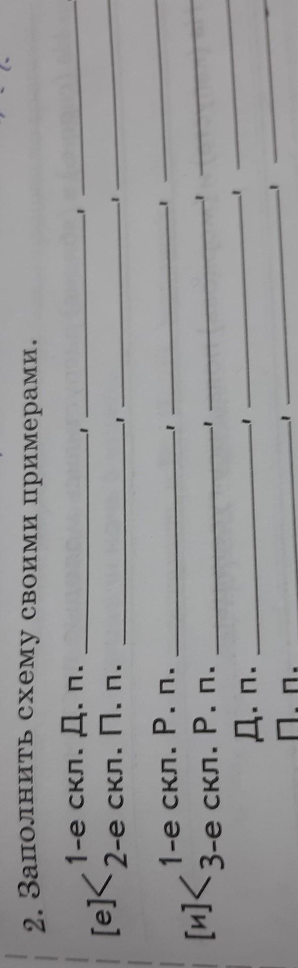 заполни схему своими примерами Е 1 склонение дательный падеж 2 склонение предложный падеж и первое склонение родительный падеж 3 склонение родительный падеж дательный падеж и предложный падеж помогите по русскому