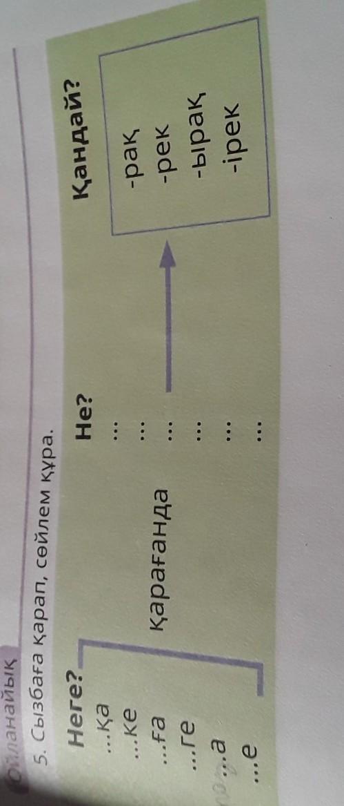 Ответ:Сағатқа қарағанда жақсырақ. Ірімшікке қарағанда керек.Айнаға қарағанда жақсырақ.Еденге қарағанда күштірек