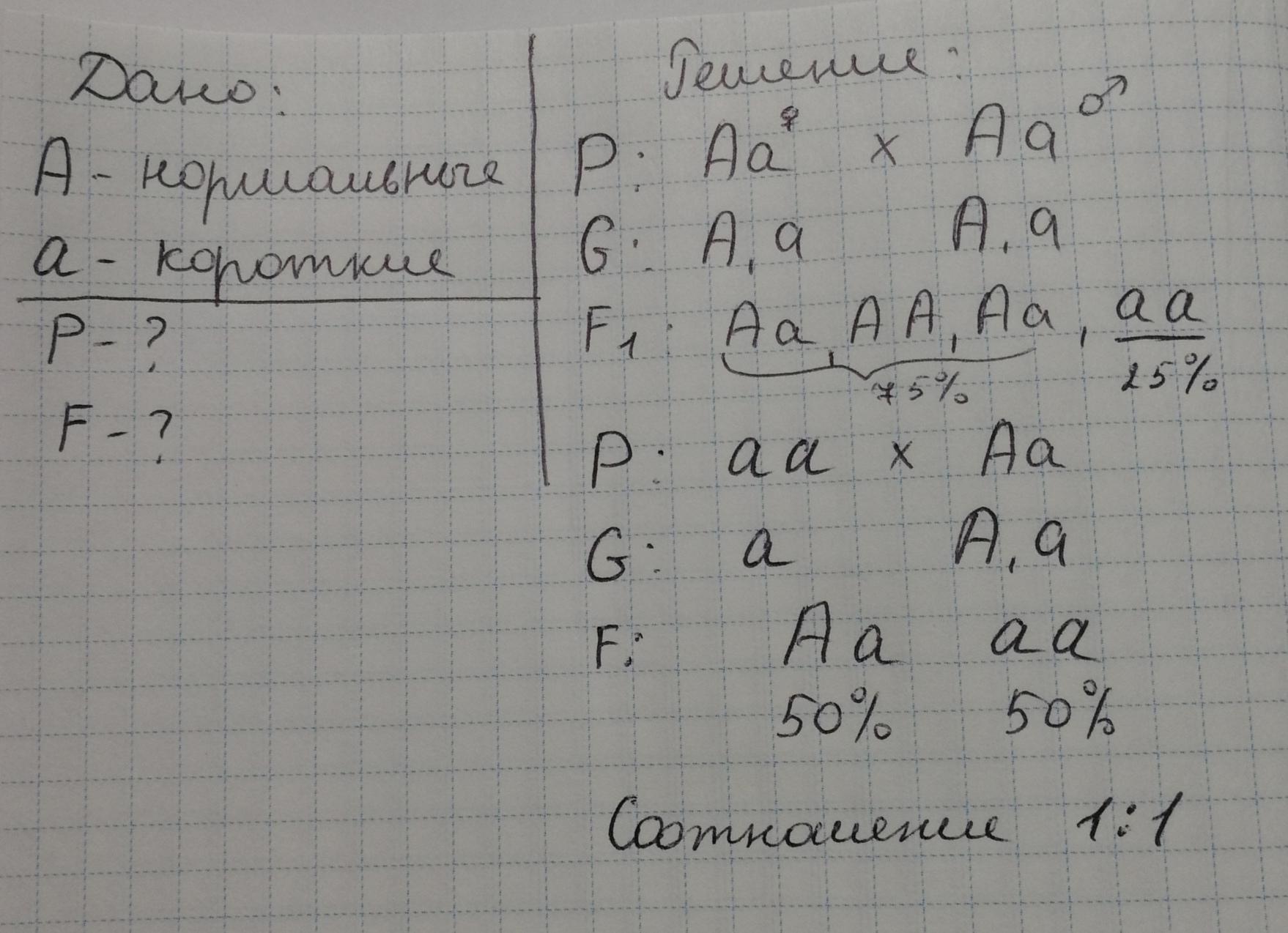 при разведении пчел имеющих нормальные крылья, в потомстве четвертая часть особей оказалась с короткими крыльями. их скрестили с одной из родительских форм, получив в след. поколении 50% особей с нормальными крыльями. проанализируйте генотипы родительских форм и потомства