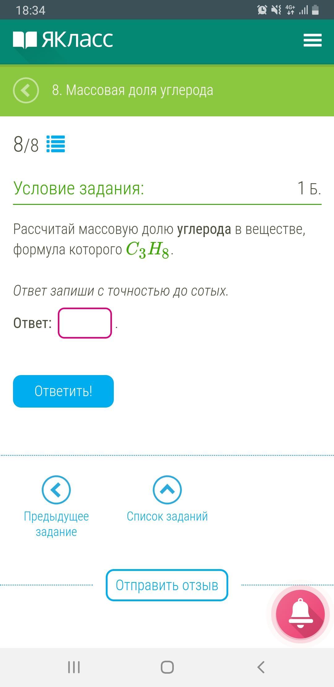 w (C) = n (количество в соединении) * M(C) / M (C3H8) * 100% = 3*12 / 44 * 100% = 36/44 * 100% = 0,8182 * 100% = 81,82%.