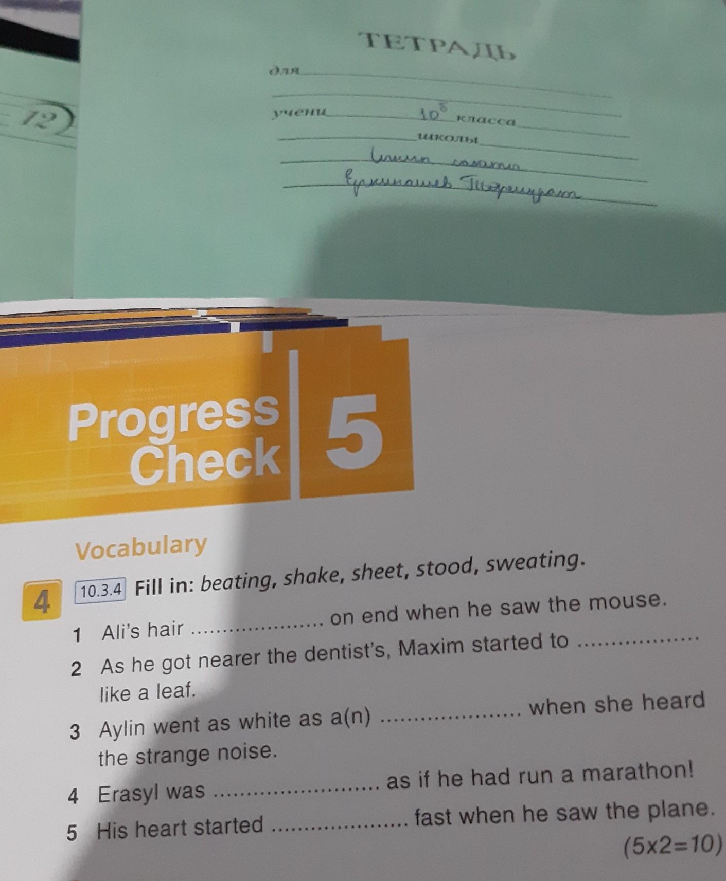 10.3.4 Fill in: beating, shake, sheet, stood, sweating.