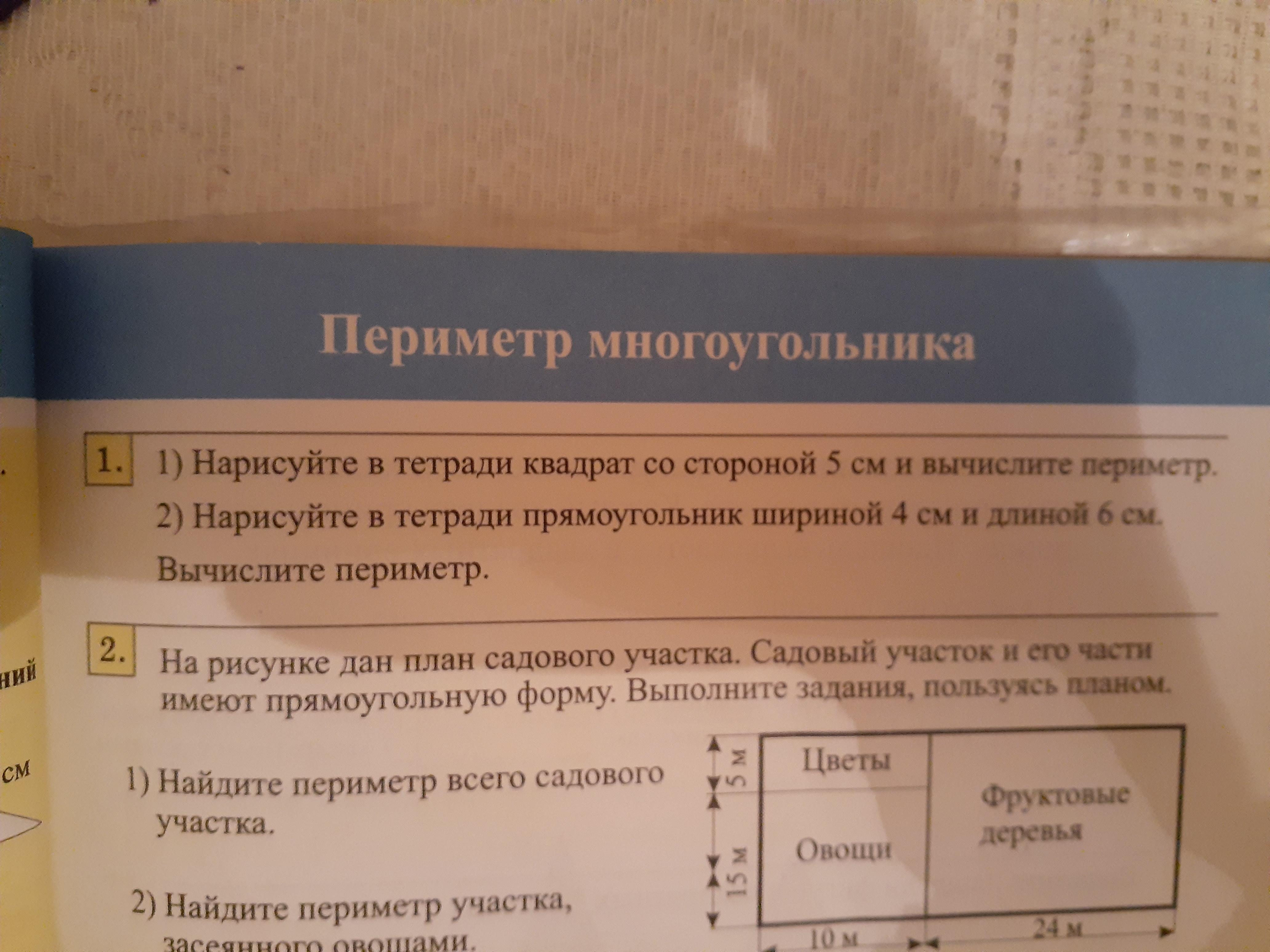 20 см периметр квадрата, 20 см периметр прямоугольника.