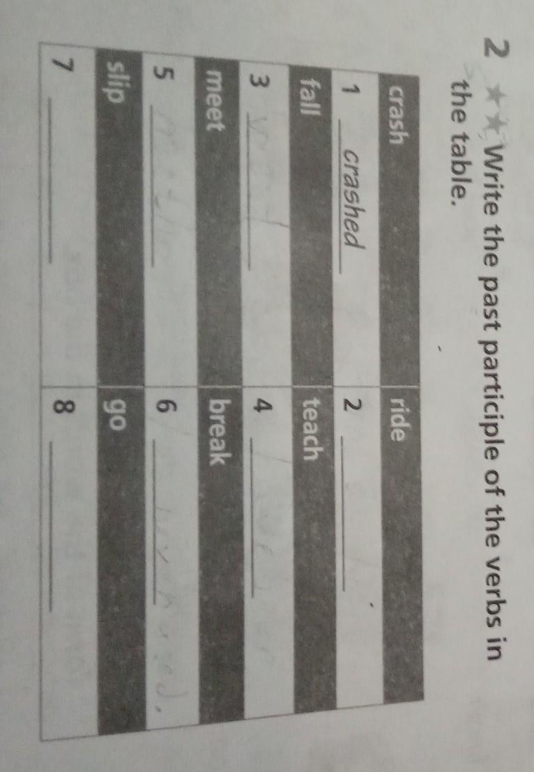2. Write the past participle of the verbs in the table.