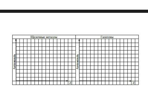Помогите пожалуйста срочно.Изобразите в виде графика как изменяется активность щелочных металлов и галогенов с увеличением протонного номера элемента