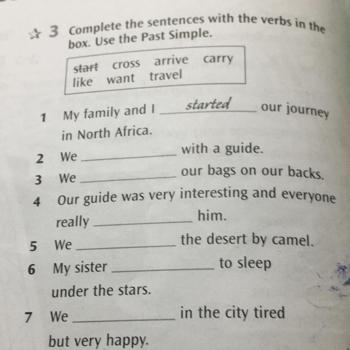 2) travelled 3)carried 4)liked 5) crossed 6)wanted 7) arrived