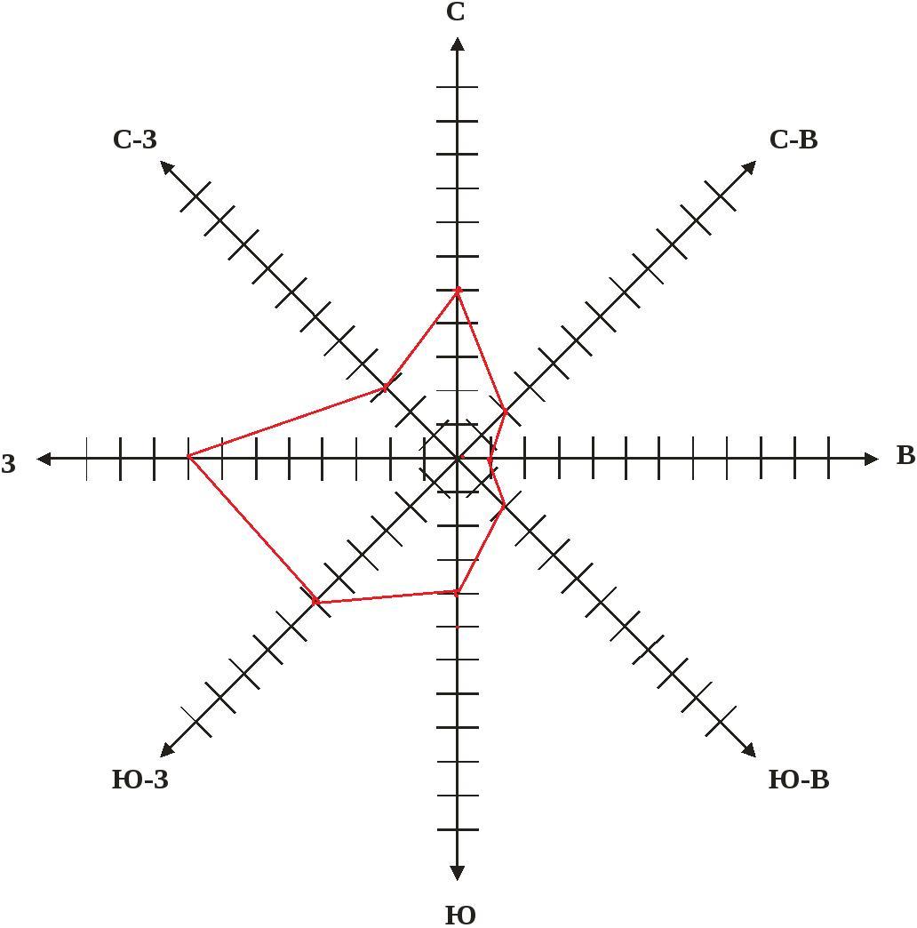 С-5,СВ-2,В-1,ЮВ-2,Ю-4,ЮЗ-6,З-8