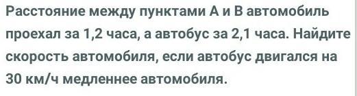 скорость автомобиля x/1.2, а скорость автобуса - x/2,1 составим уравнение: