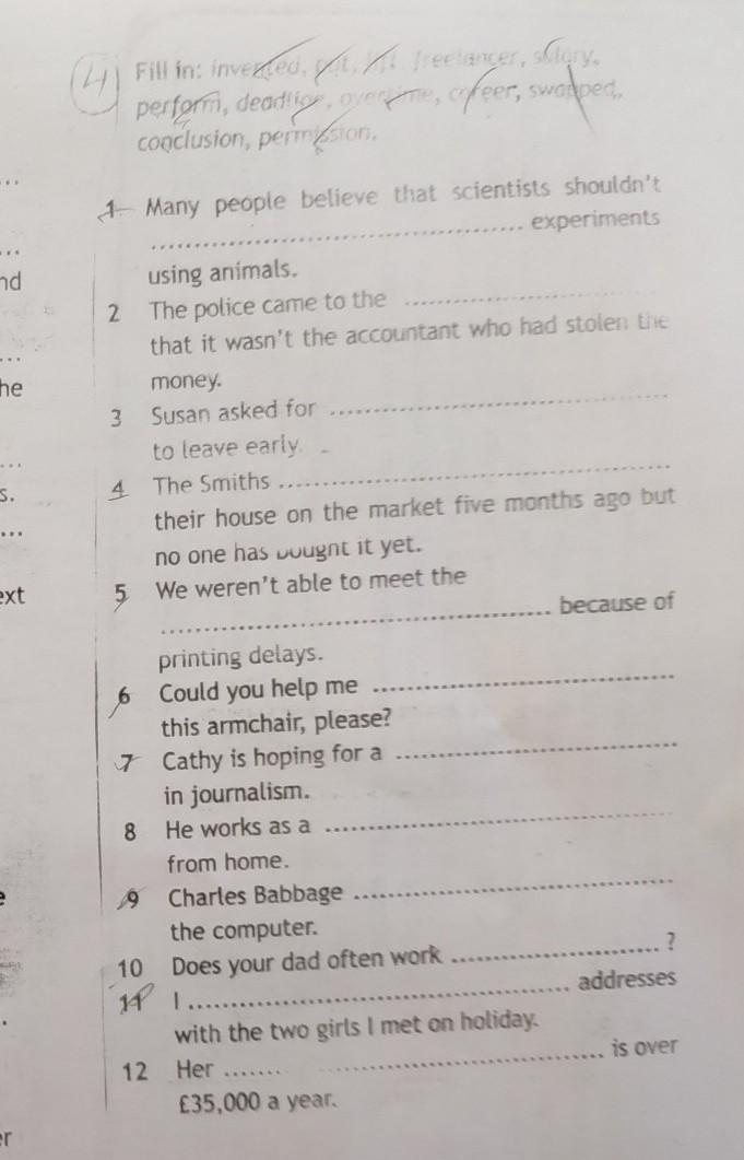 7-ое предложение- carreer; 8-ое предложение- freelancer