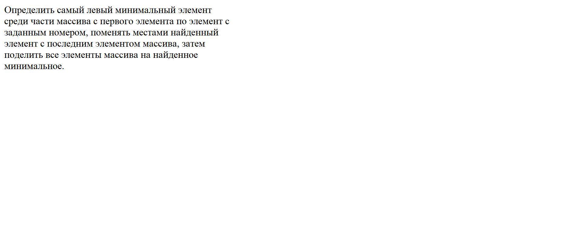 for i:= 1 to ArraySize do begin Write((x[i]/Min):5:1); Write(' '); end;