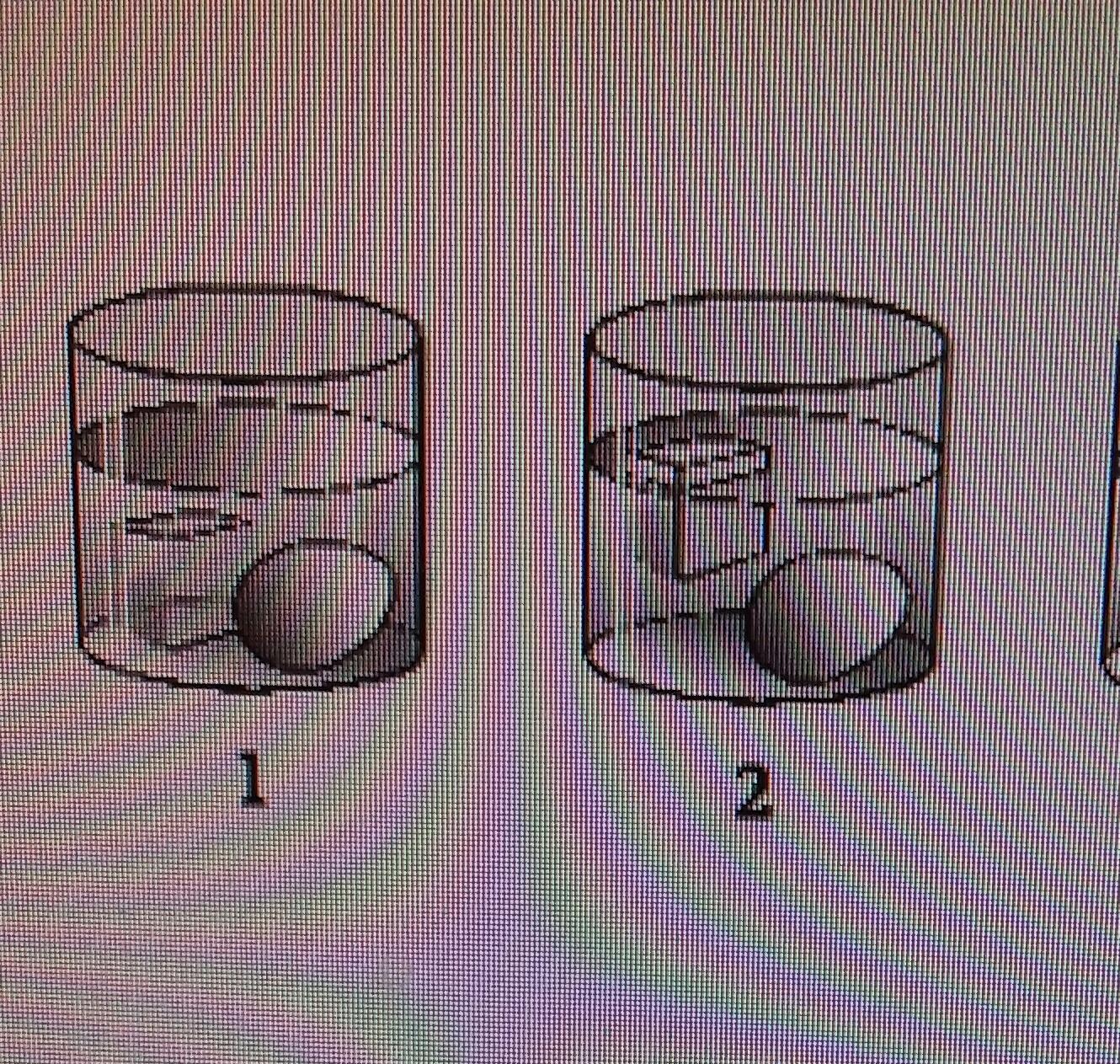 Для кубика в жидкости 2 выталкивающая сила превышает силу жидкости.