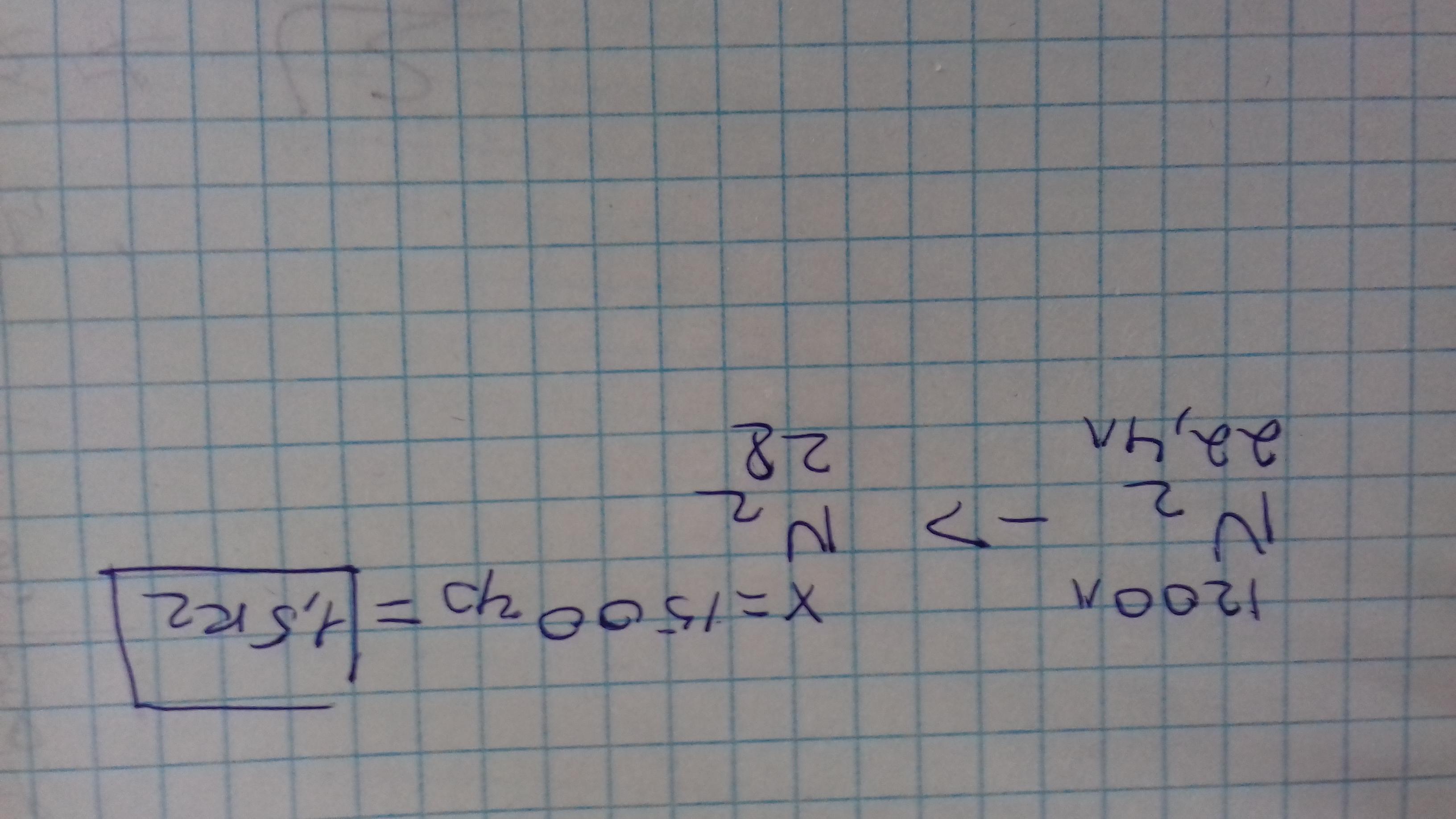 Объяснение любой газ при нормальных условиях равняется 22.4 л, а у тебя спрашивают сколько весит 1200л азота