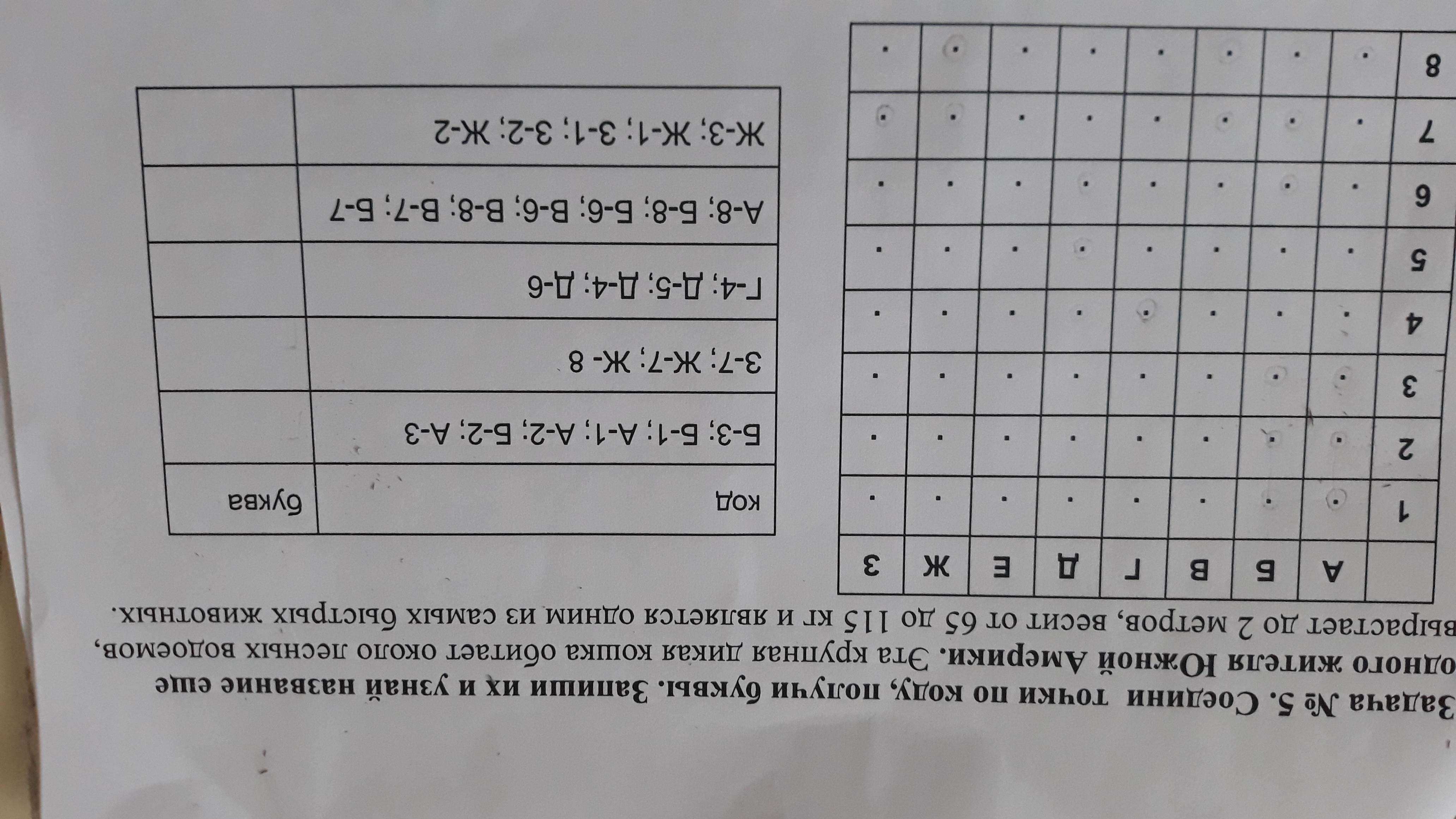 Соедини точки по коду , получи буквы. Запиши их и узнай название еще одного жителя Южной Америки.