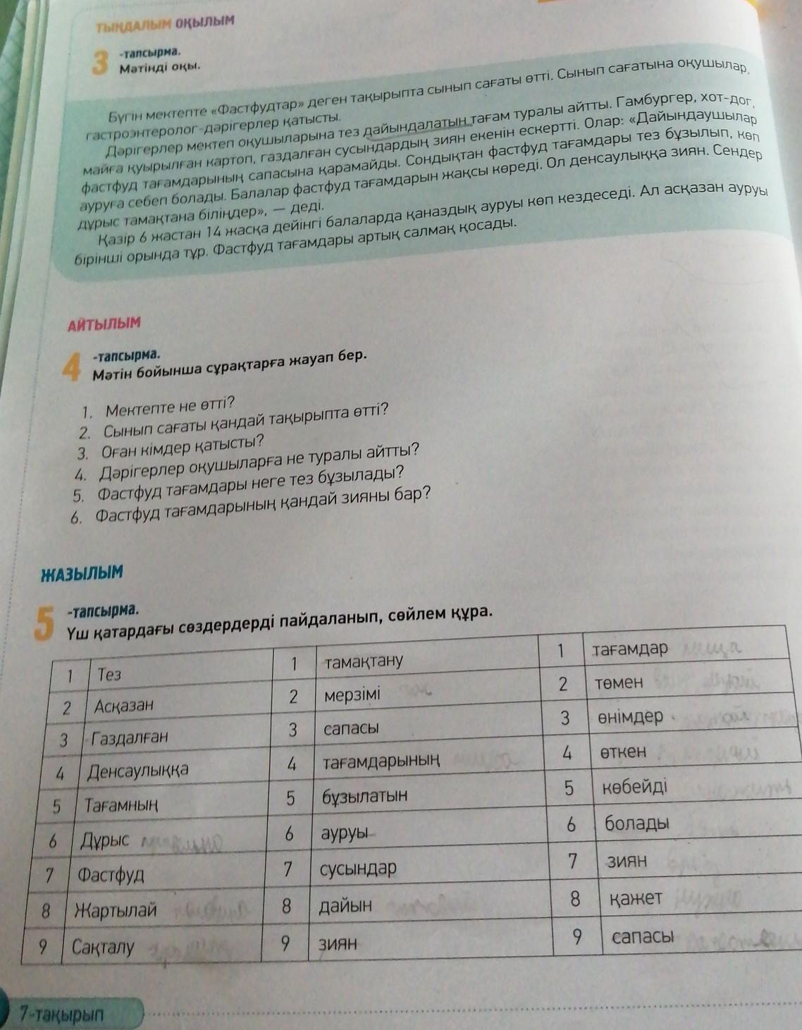 4. Дәрігерлер оқушыларға тез дайындалатын тағамдардың адам денсаулығына зиян екенін айтты.