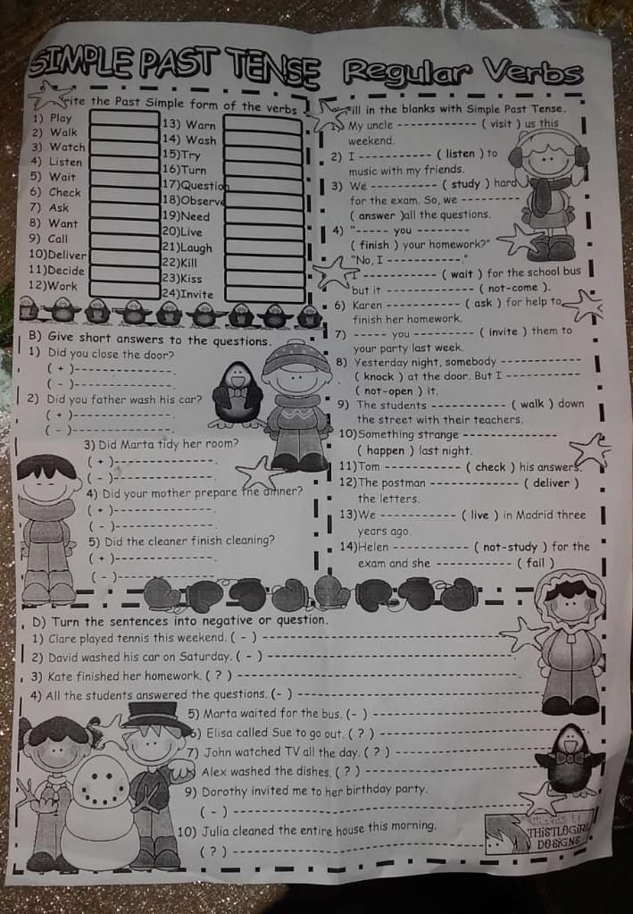 а) played, walked, watched, listened, waited, checked, asked, wanted, called, delivered, decided, worked, warned, washed, tried, turned, questioned, onserved, needed, lived, laughed, killed, kissed, invited