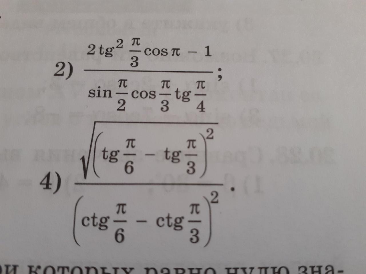 2) 2tg^2 πcosπ -1/sin π/2 cosπ/3 tgπ/4
