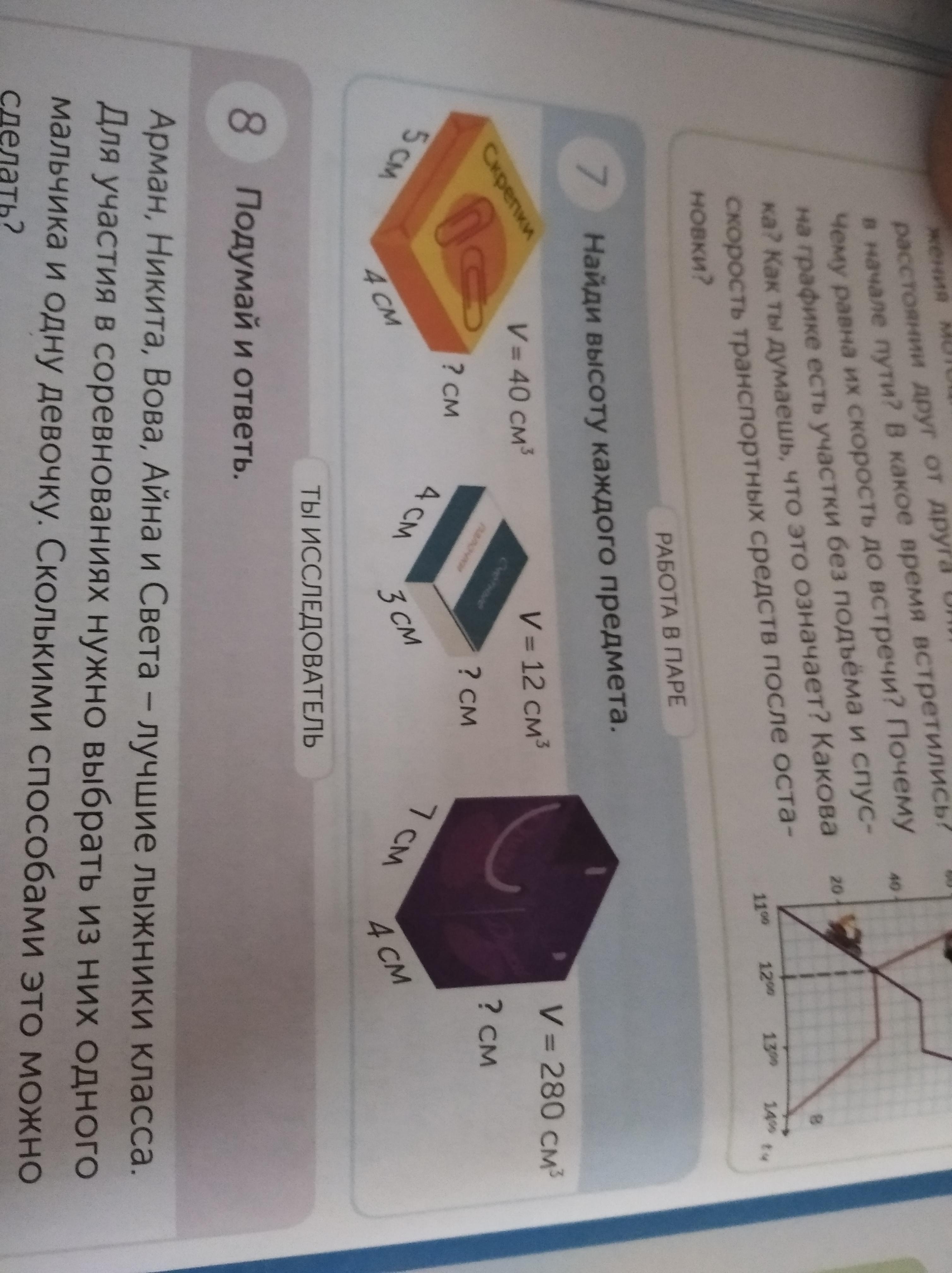 Объем вычисляется по формуле V=abc, где a- длина, b-ширина, c-высота. Соответственно если нам известен объем, но неизвестна высота, то нам нужно объем V разделить на длину a и ширину b.