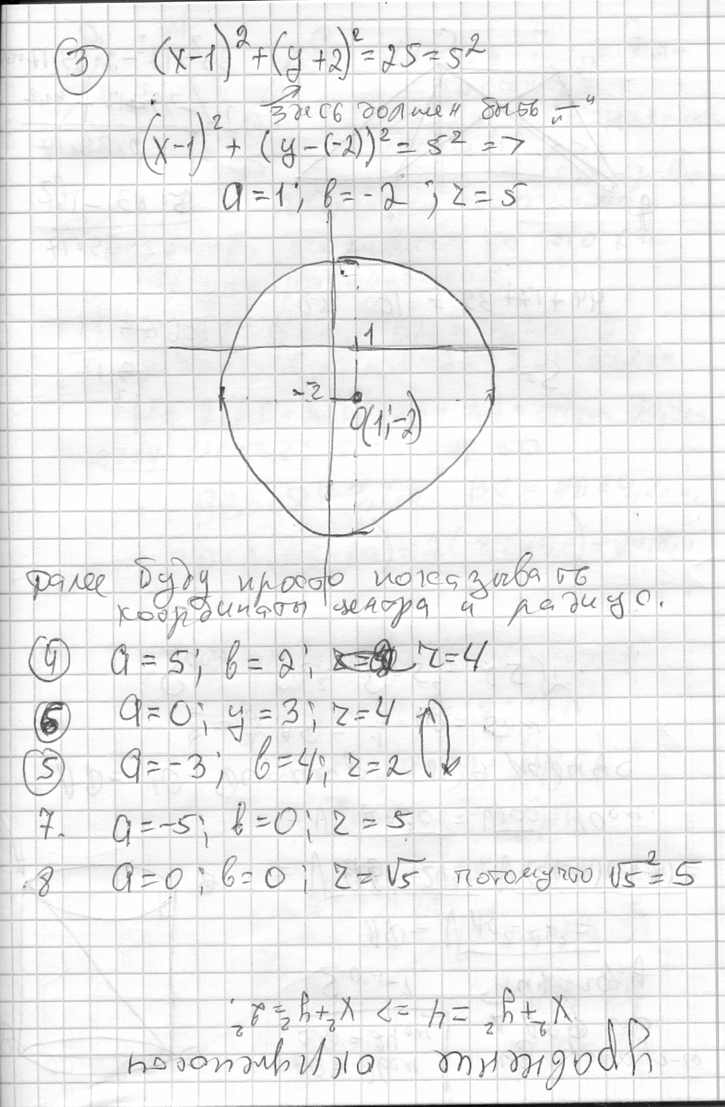 3. (х-1)2+(у+2)2=25