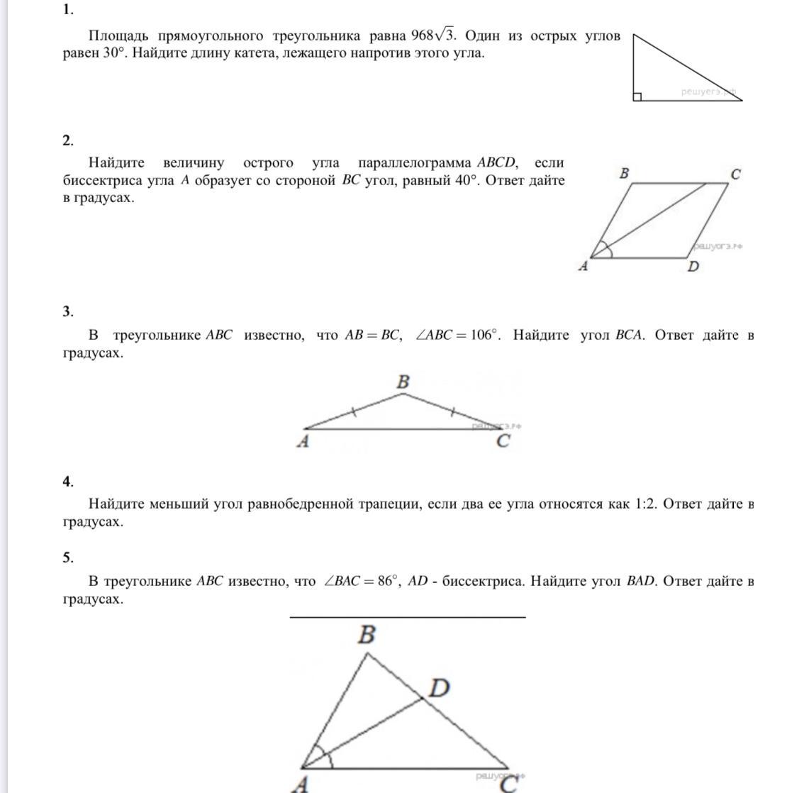 1) Катет, лежащий против угла в 30° равен х, тогда гипотенуза = 2х.