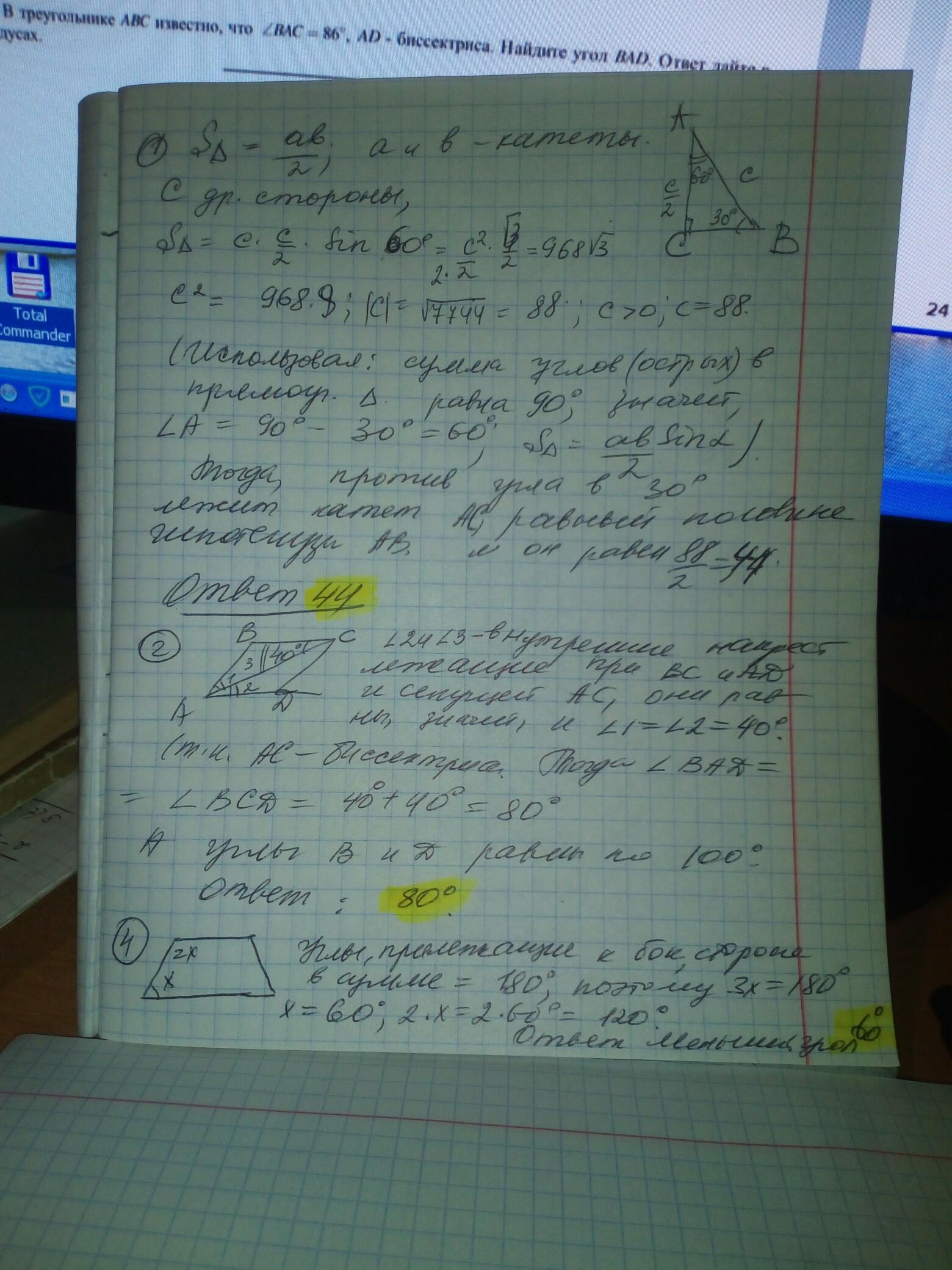 5) ∠BAD=∠BAC^2=86°:2=43°