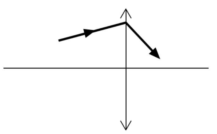 Через оптический центр провести прямую параллельно падающему лучу до пересечения с преломленным лучом