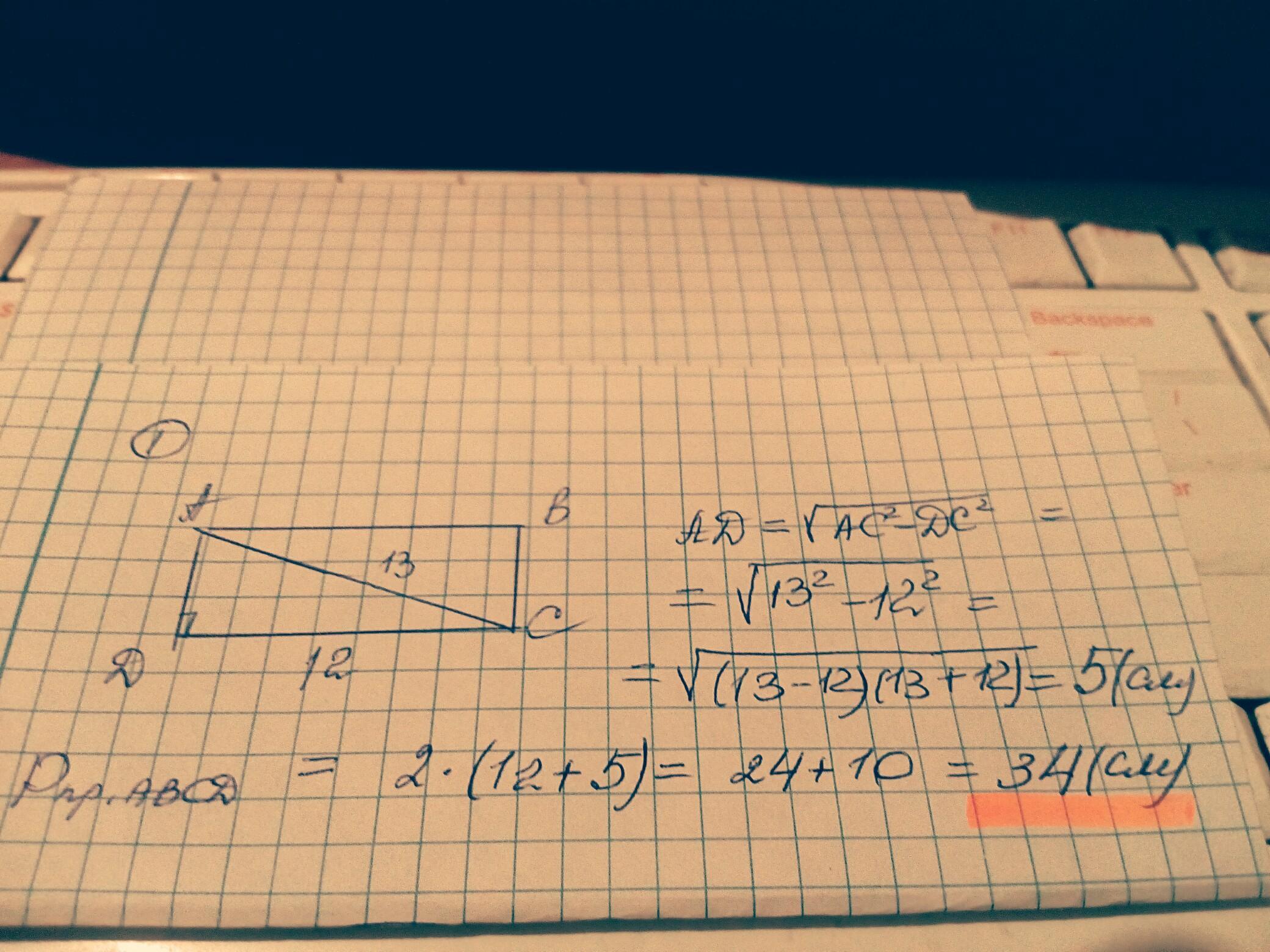 діагональ прямокутника дорівнює 13 см а одна з його сторін і 12 см знайти периметр прямокутника