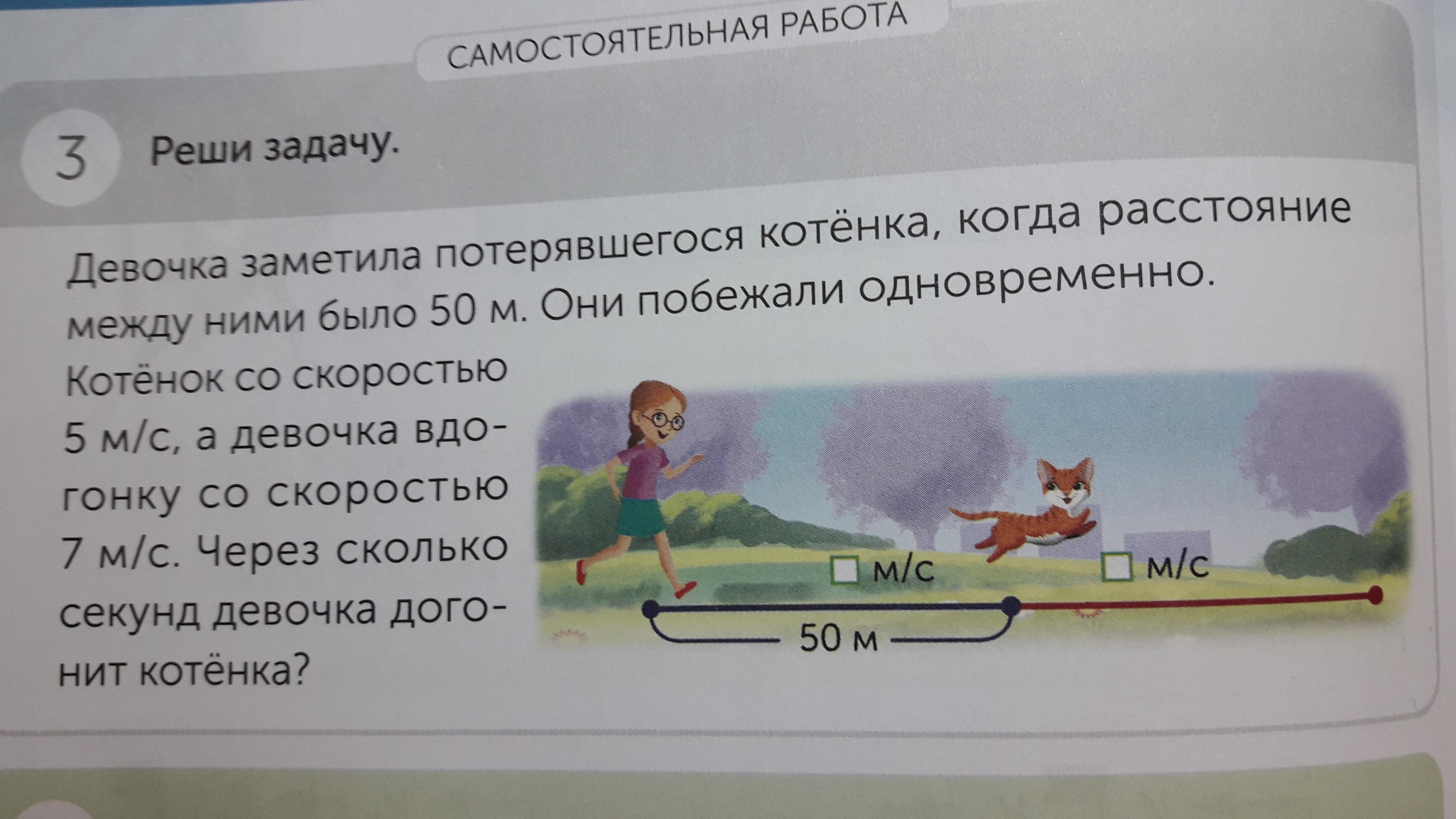 50:2 = 25 с время, за которое девочка догонит лисёнка.