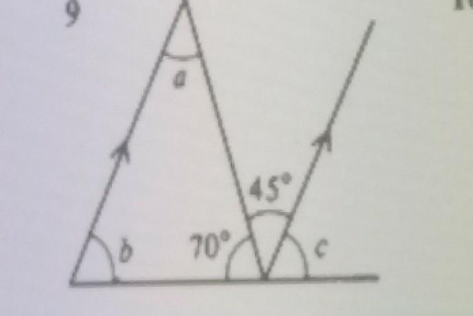 1) 180° - 70° - 45° = 65° (∠с)