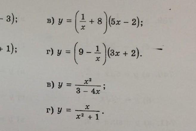 г) y=(9-1/x)(3x+2)=27x+18-3-2/x=27x-2/x+15