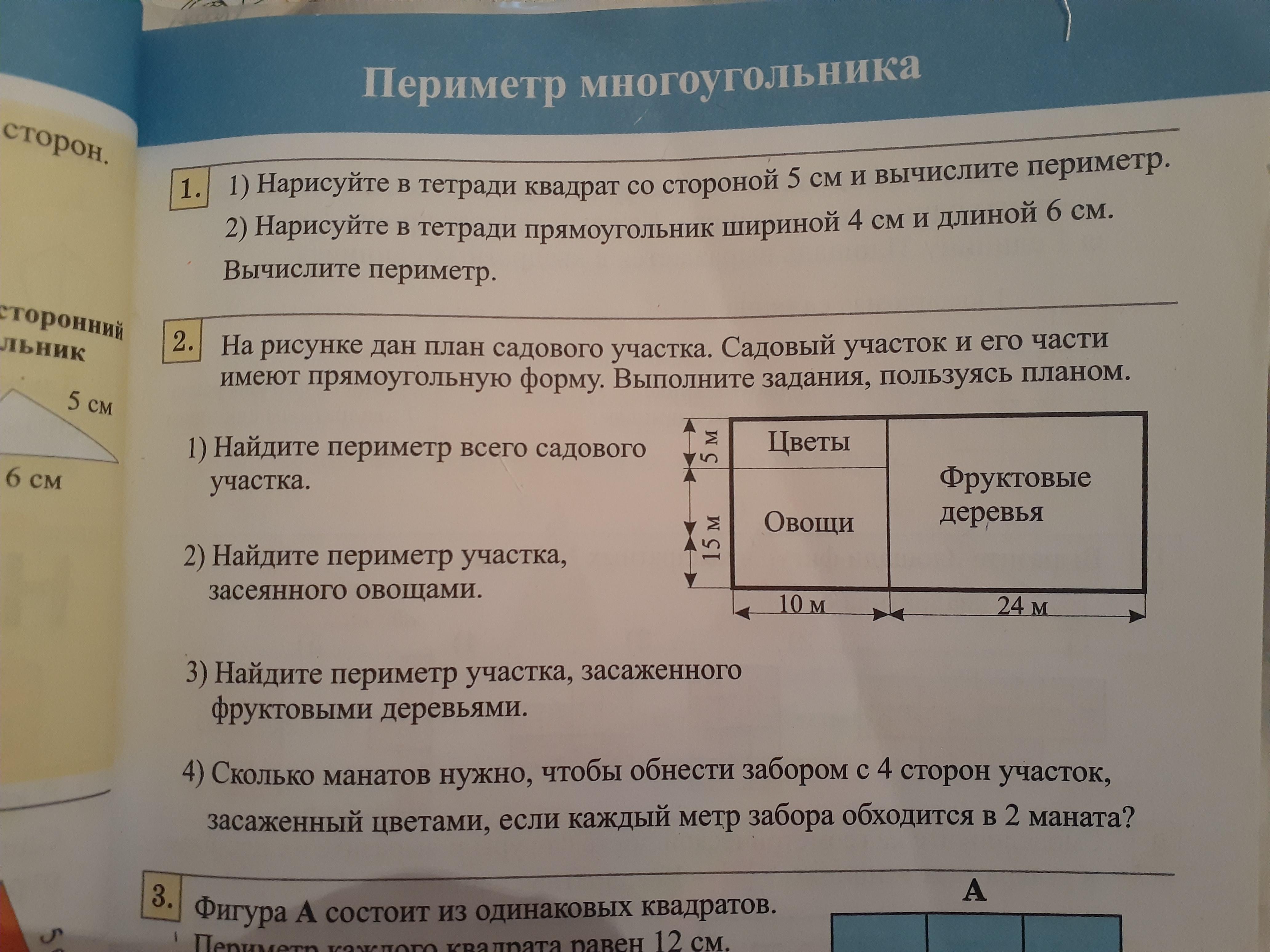 4. (10+5)*2=30 периметр участка с цветами. 30*2=60