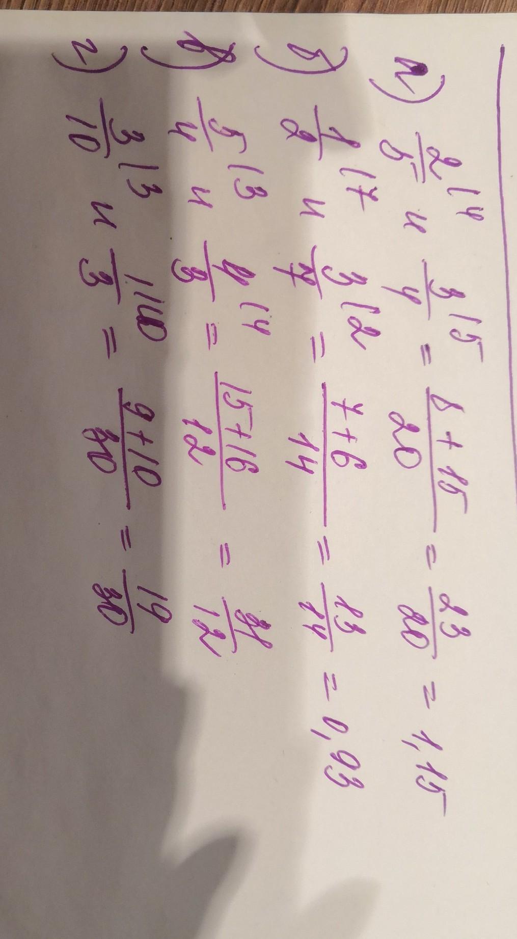 приведите дроби к наименьшему общему знаменателю. А)2/5 и 3/4; Б)1/2 и 3/7; В)5/4 и 4/3; Г)3/10 и 1/3