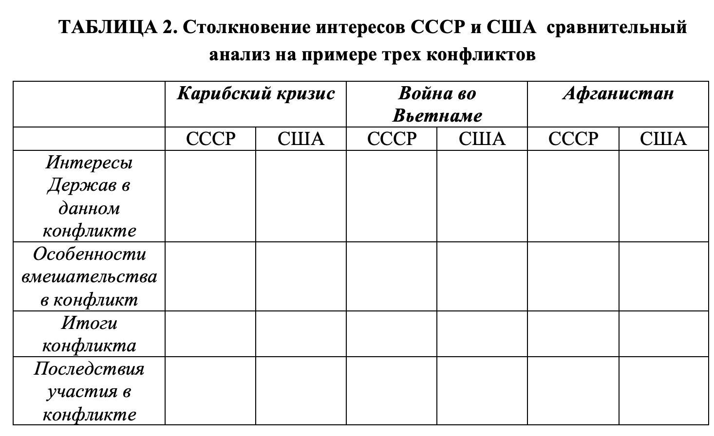 Интересы Держав СССР и США в Карибском кризисе, войне во Вьетнаме, войне в Афганистане