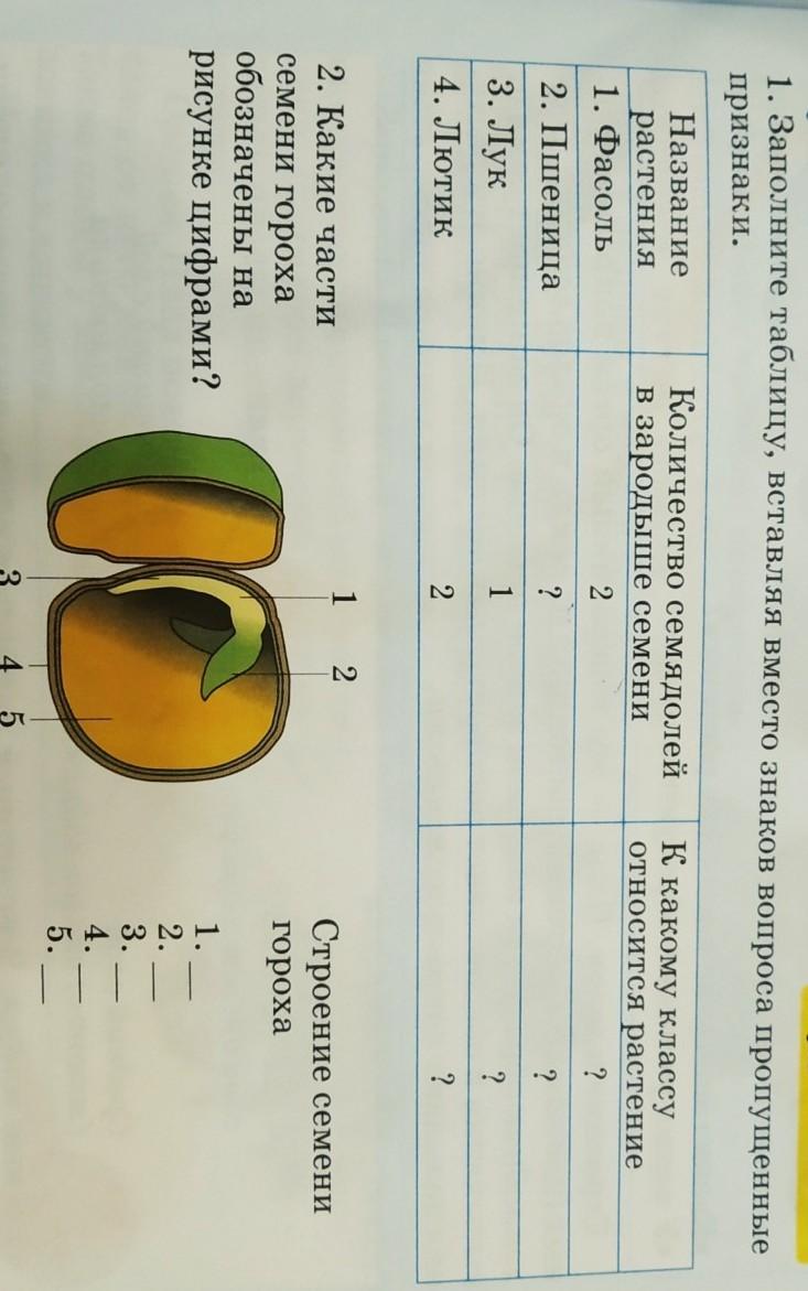 1) Фасоль: 2 семядоли, класс - двудольные