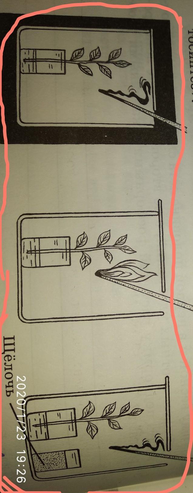 В третий сосуд поставили растение и щелочь. Щелочь поглотила углекислый газ, поэтому фотосинтез не происходил. Это доказывает то, что для фотосинтеза необходим углекислый газ.