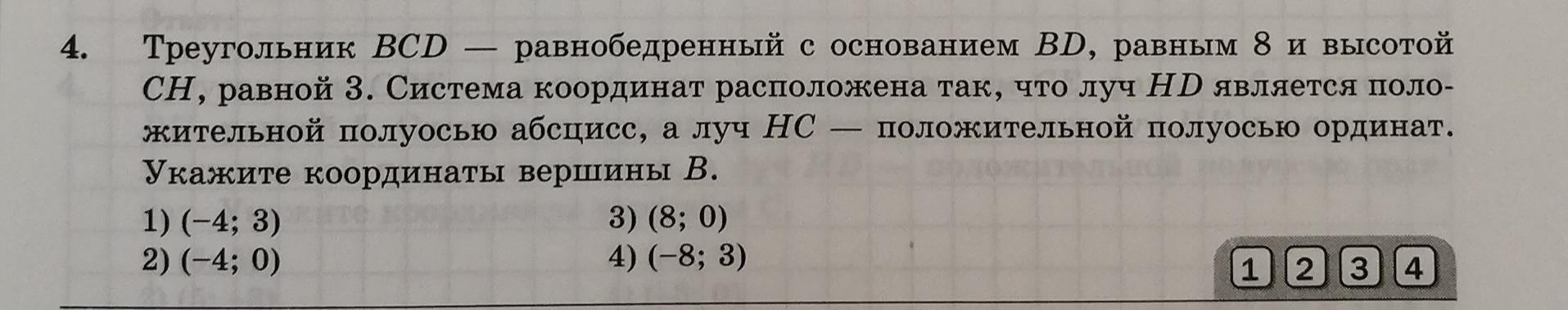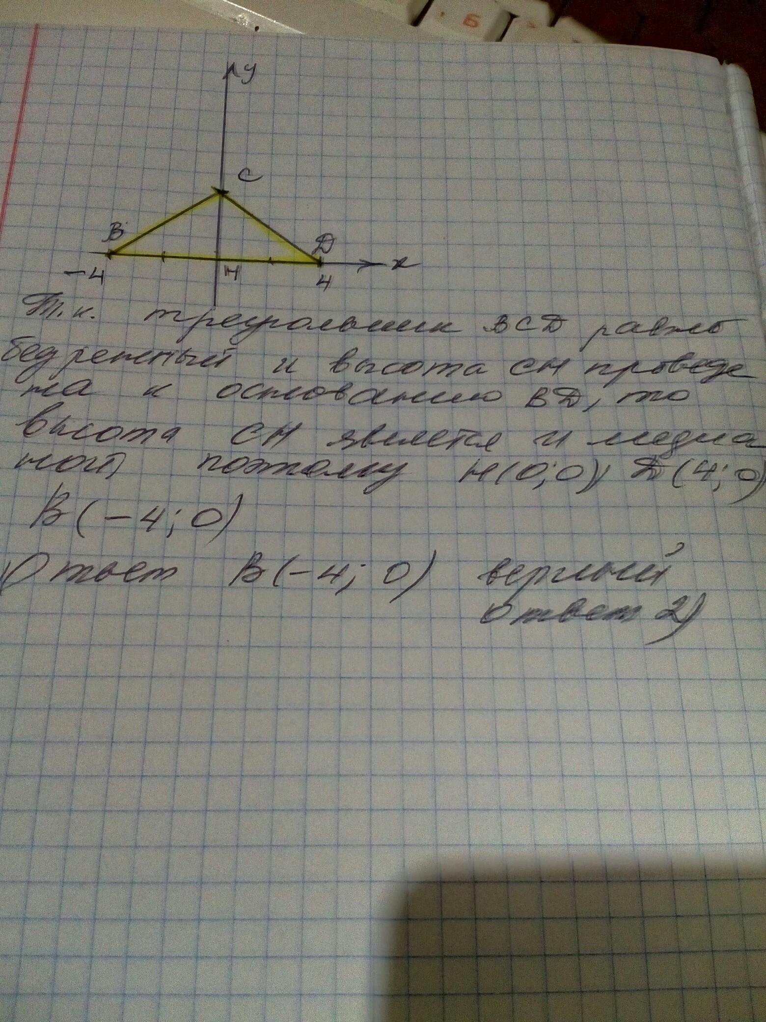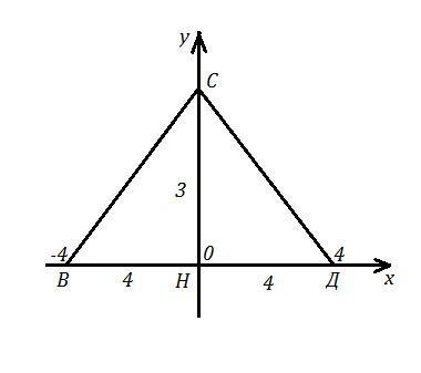 ΔBCД: ВД=8 , ВС=СД , точка Н - середина стороны ВД и начало координат, Н(0,0) .