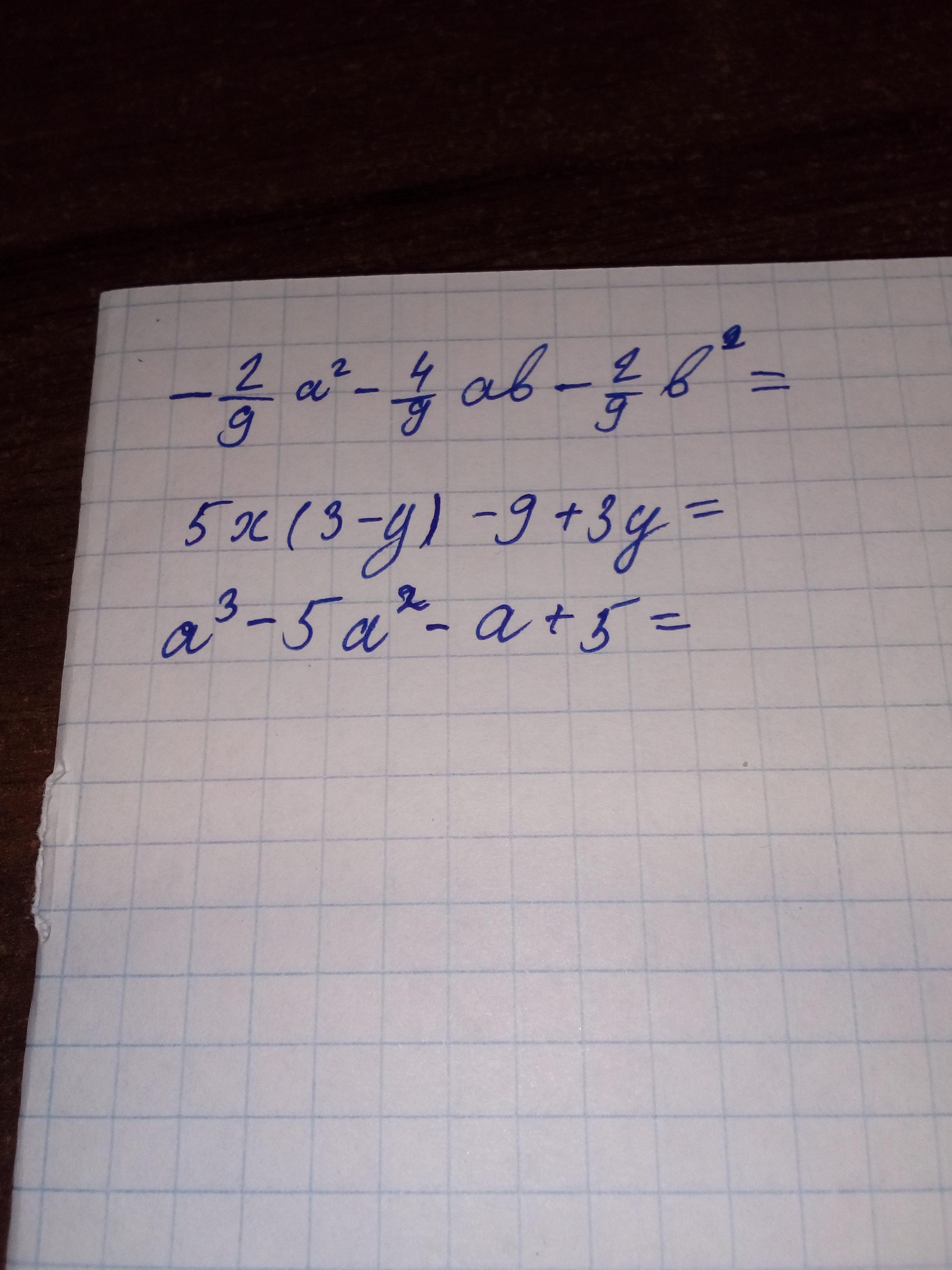 5x(3-y)-9+3y= 5x·3 + 5x·(-y) - 9 +3y = 15x-5xy-9 + 3y = (15x-5xy) +(9-3y) =
