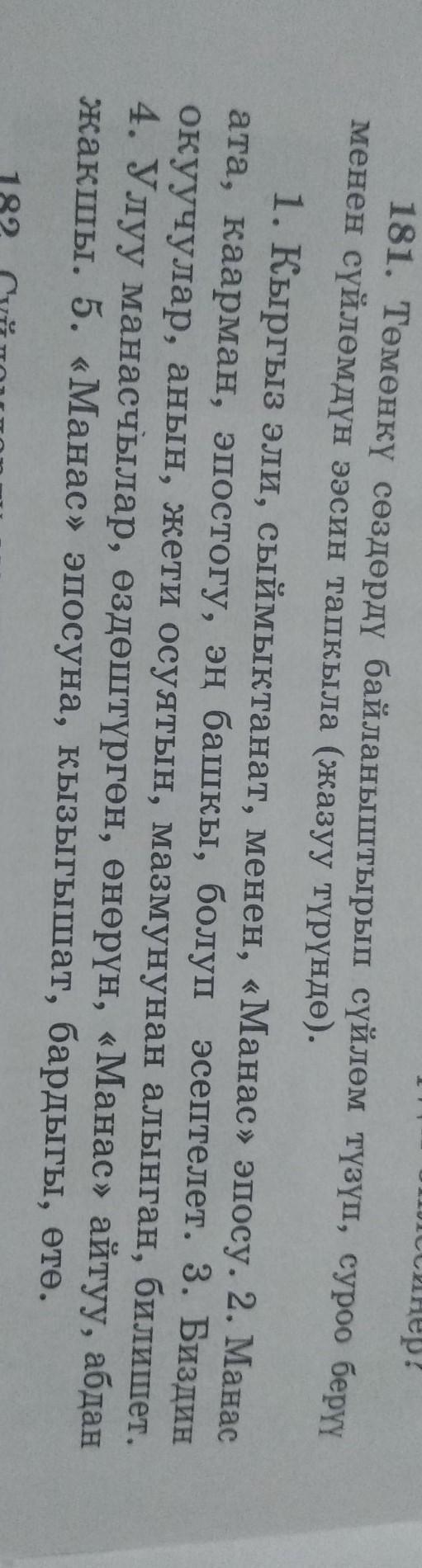 - Кыргыз эли "Манас" эпосу менен сыймыктанат. (ким? кыргыз эли)