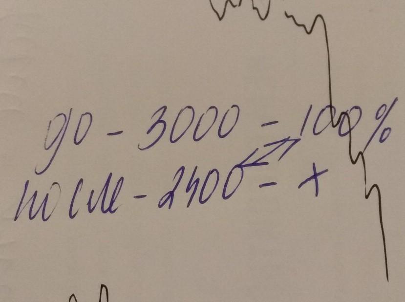 Сначала найдем сколько процентов составляет новая цена стола по скидке. Возьмём неизвестное нам(проценты) за х, получаем пропорцию: 2400*100:3000=80%(столько процентов составляет новая цена стола от первоначальной суммы.)