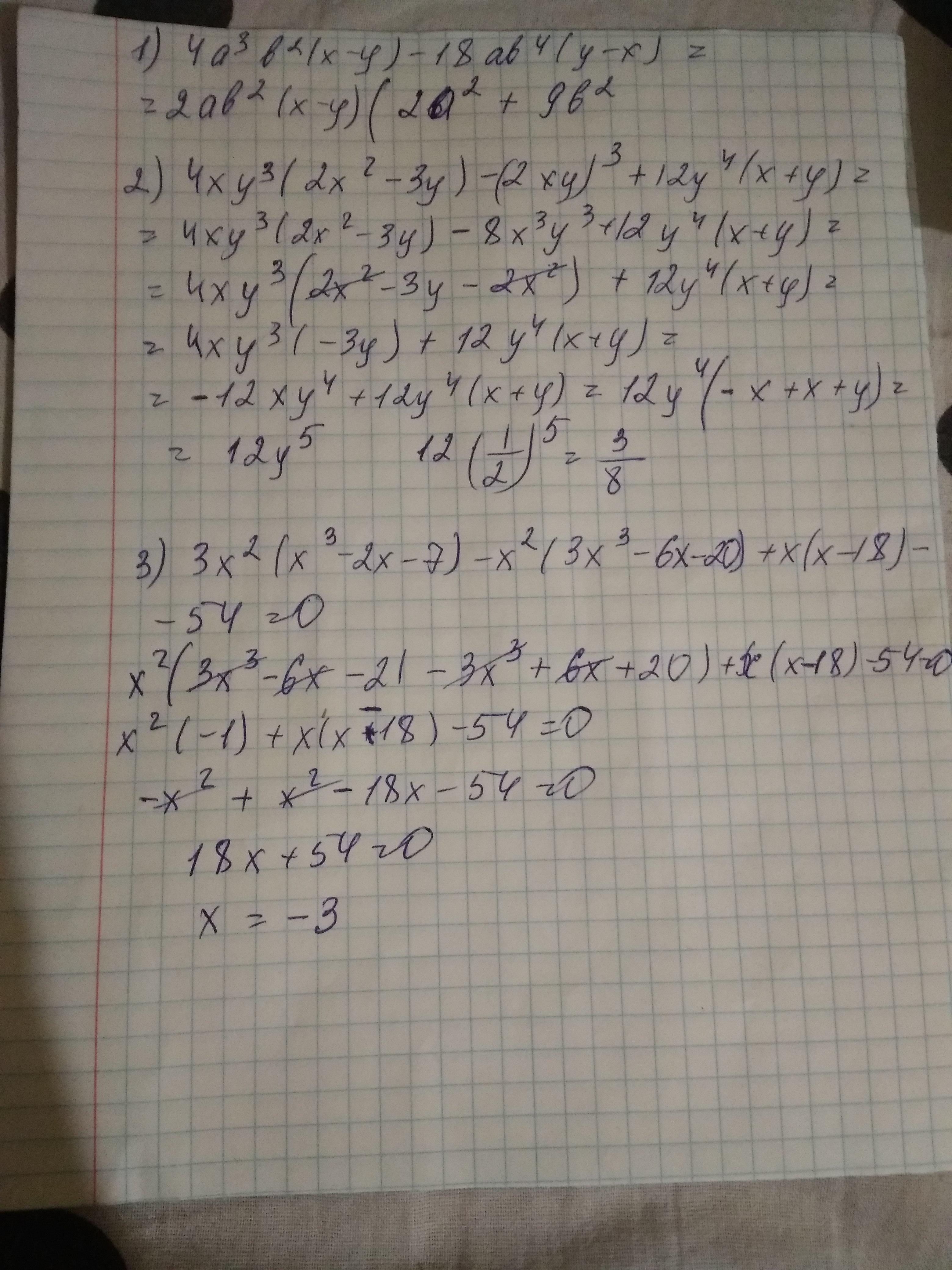 Ответ:1) 2ab^2(x-y)(2a^2+9b^2)