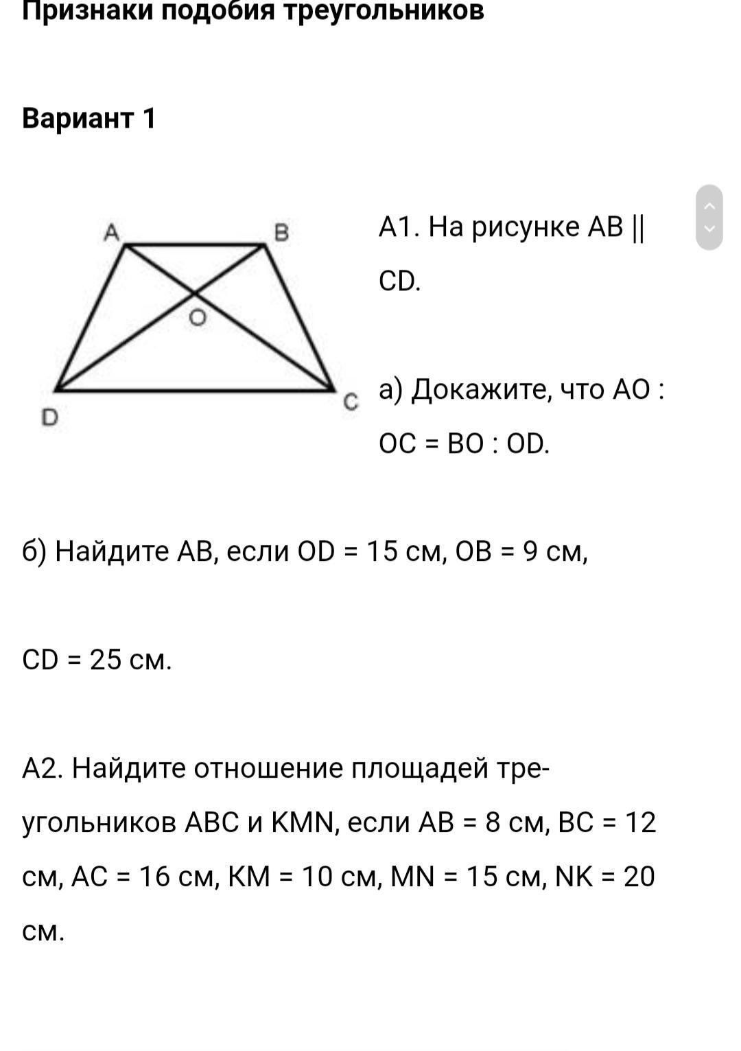 А) 1) Треугольник DOC подобен треугольнику АОВ (по двум углам) :