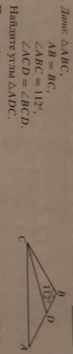 1) т.к. по условию AB=BC следовательно треугольник ABC равнобедренный и угол BCA=углу BAC, а т.к. угол СВА=112 следовательно (180-112)/2=34 (угол ВСА и угол ВАС)