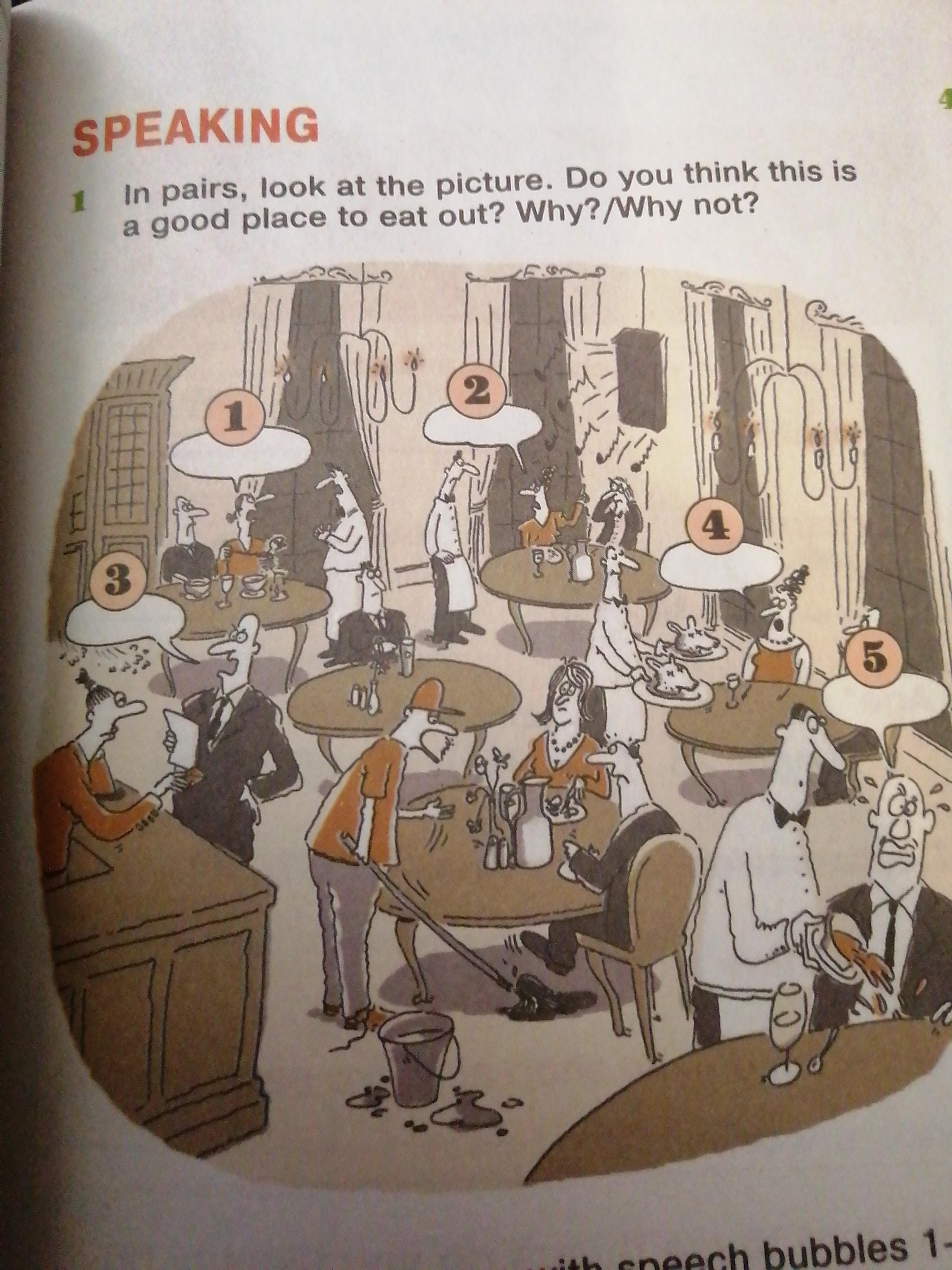 In pairs, look at the picture. Do you think this is a good place to eat out? Why?/Why not? Пожалуйста помогите!