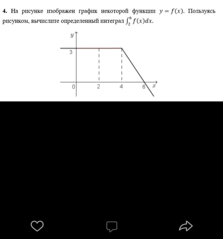 Определенный интеграл = площадь под графиком от 2 до 6 ⇒ S = 6 + 3 = 9.