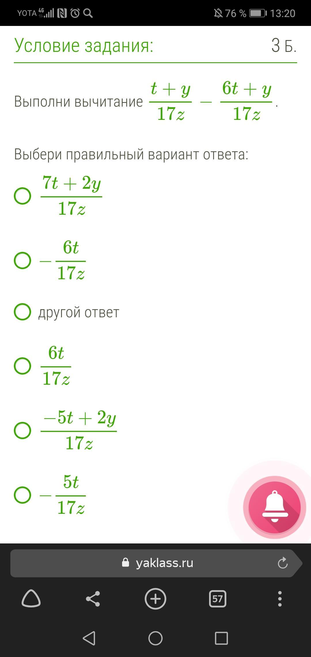 \frac{t+y}{17z}-\frac{6t+y}{17z}=\frac{t+y-6t-y}{17z}=-\frac{5t}{17z}