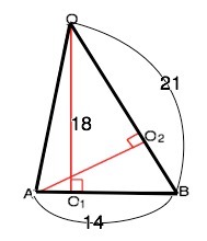 ABO-треугольник АВ=14 см,ВО=21см,ОО1=18см,найти высоту АО2