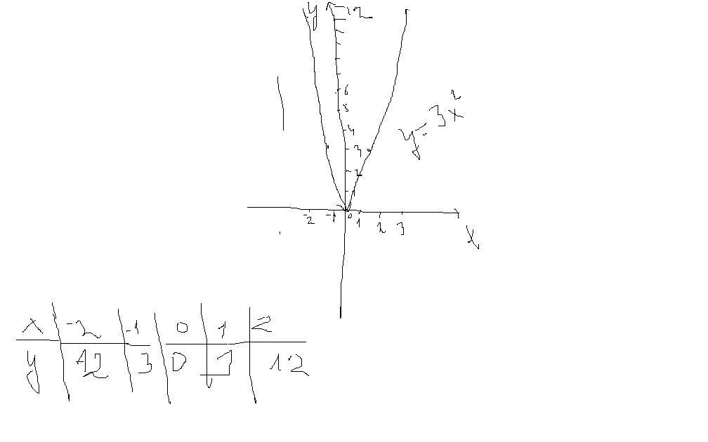 y=3x^2 это парабола вместо х подставим -2 ,значит у= 3*(-2)^2=3*4=12 при х=-2 у=12 при х=-1 у =13 при х=0 у=0; при х=1 у=3; при х 2 у=12