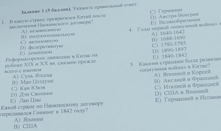 1. В какую страну превратился Китай после заключения Нанкинского договора?